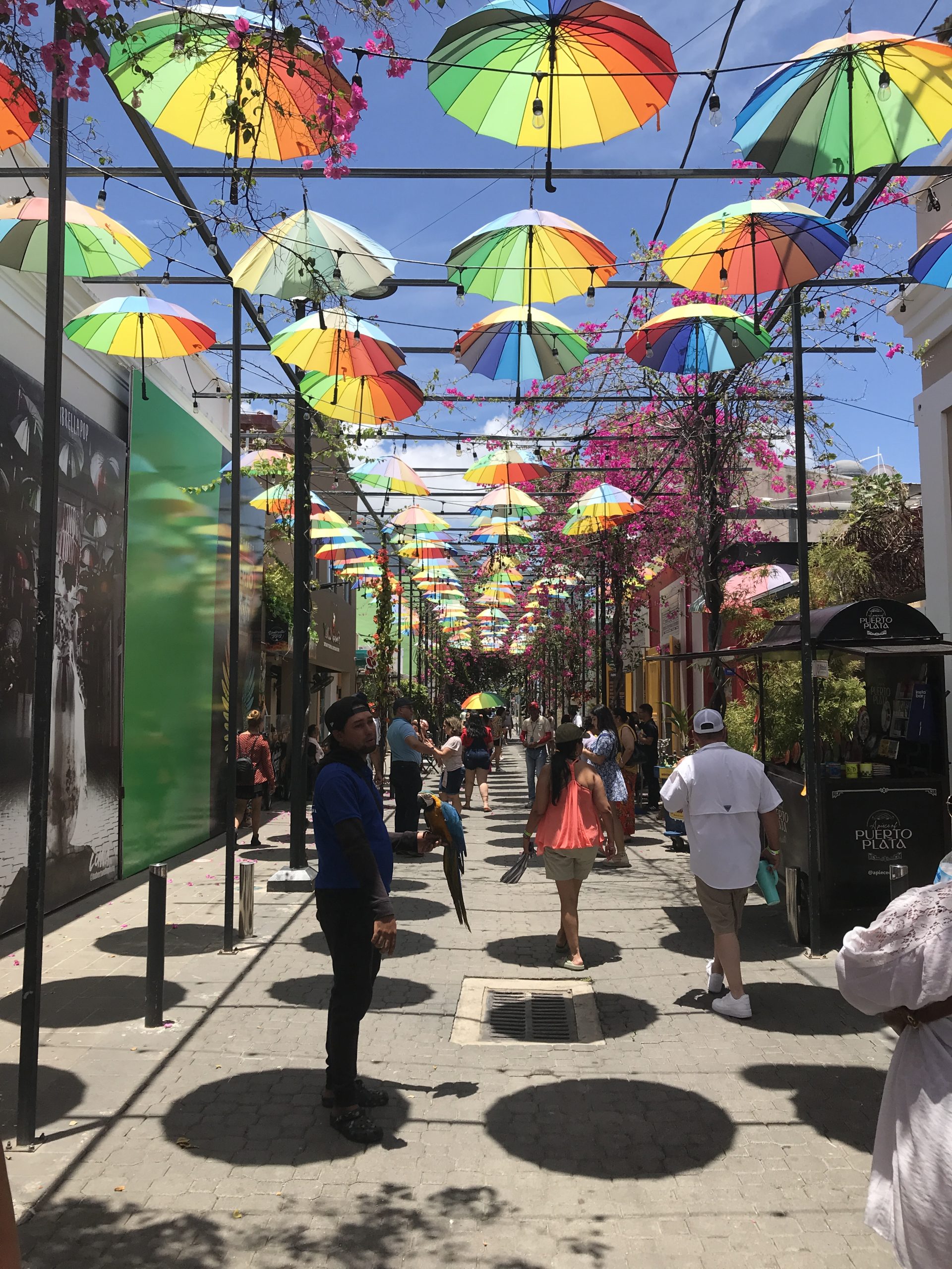 We took a stroll down El Paseo de Doña Blanca and the Umbrella Street. And not being shoppers, we passed on the jewelry stores and cigar shops, but we did step into a coffee and chocolate (Dominican Republic specialties) shop and made a couple of purchases.