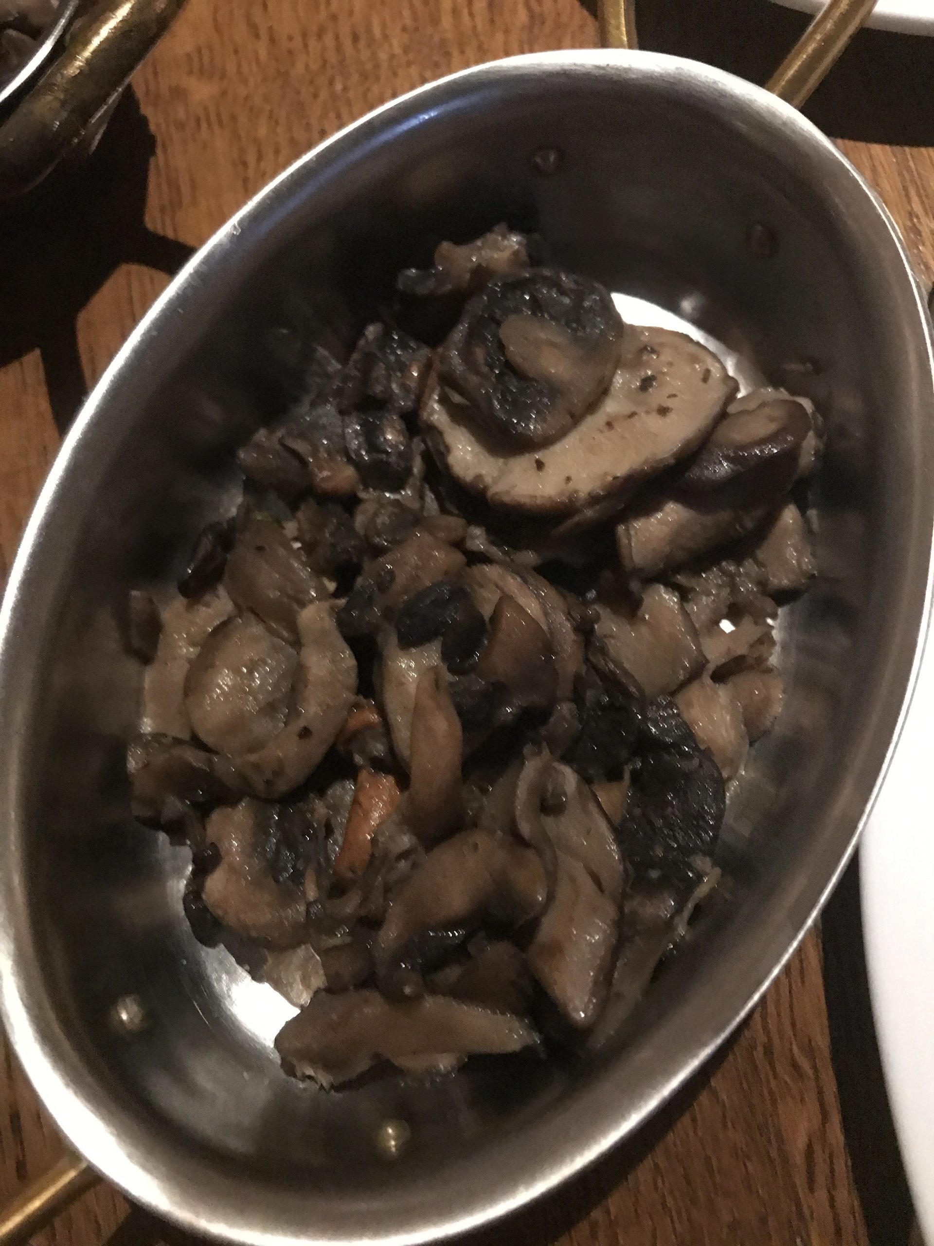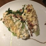 Table choices: Bread shared by all, twice-baked potato shared by Bob and John, and dessert of one of our tablemates.