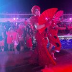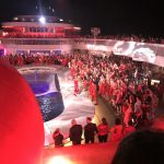 I actually stayed up for this party, and it was a grand one—outside around the pool. It began with a show by the ship performers, and eventually everyone was encouraged to join in.