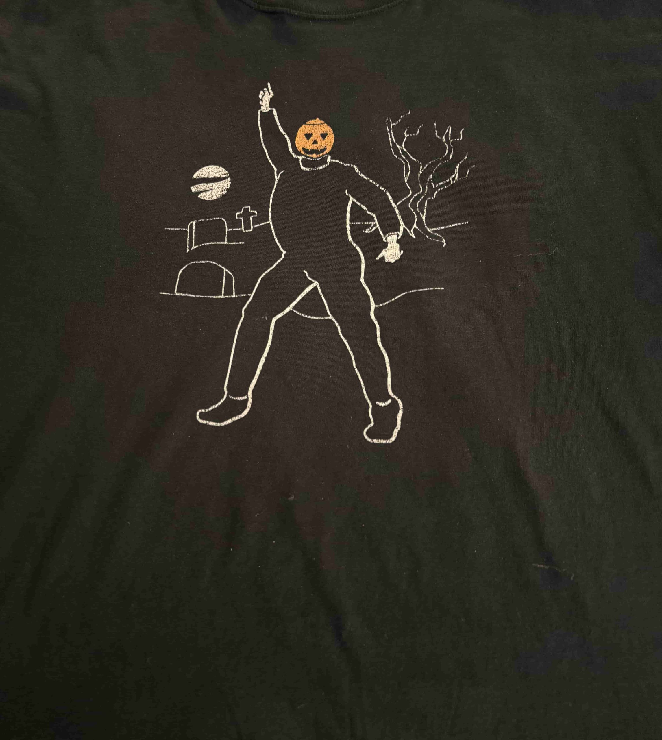 Sure enough, when I got to the register he said, “I like your shirt. I don’t think I’ve ever seen a man with a pumpkin head, though.”